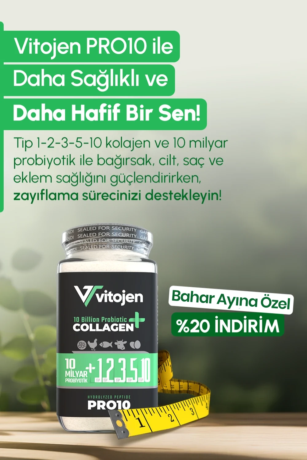 2018 yılında başlayan yolculuğumuzda, şimdi Vitojen markamızla sizlere daha fazlasını sunuyoruz. Kolajen ve yerli probiyotik kaynaklı gıda takviyelerimizle sağlıklı yaşamı destekliyor, doğanın şifasını modern bilimle harmanlıyoruz.